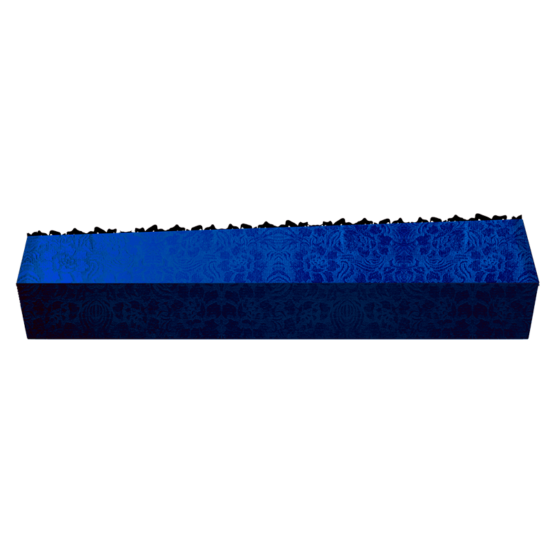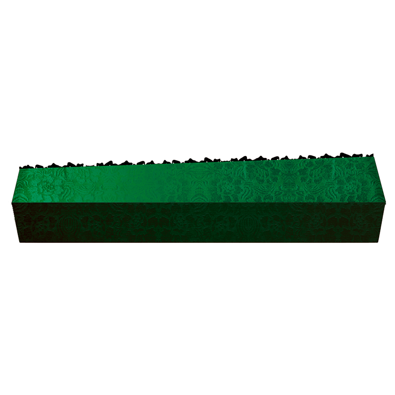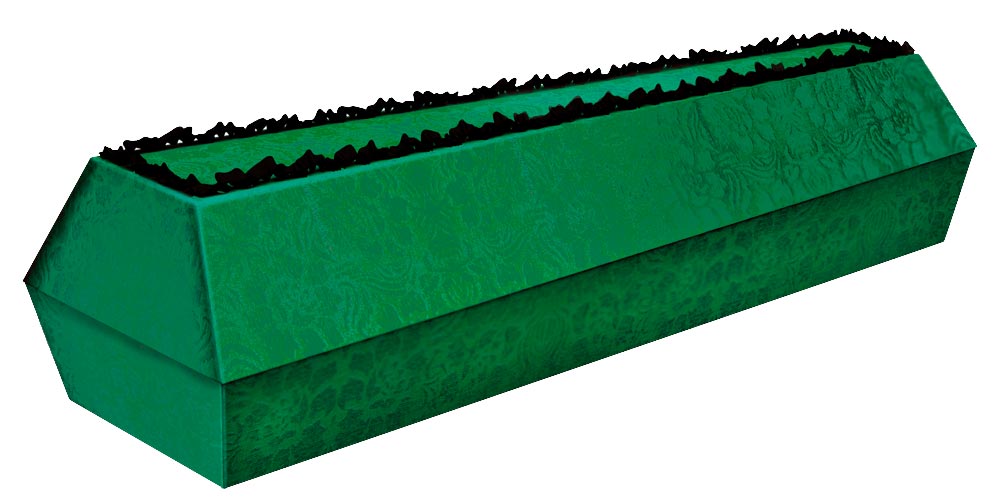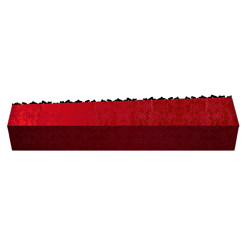Недорогой деревянный гроб трапециевидной формы, напоминающий погребальную ладью у древних славян. Обычно изделие обивается тканью традиционного красного цвета, символизирующего цвет постсоветского пространства. Но зачастую цвет определяется случайным образом производителем. Внутренняя часть гроба может быть представлена в нескольких цветовых вариациях. Данная модель гроба является универсальной для умерших разного телосложения. Традиционный тканевый гроб подходит как для захоронения, так и для кремации.